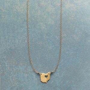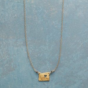 Celebrate your favorite state with our 18kt gold-plated charm strung on a 14kt gold-filled chain. A cut-out heart shows your love. Lobster clasp. Handcrafted. Exclusive. 17-18l